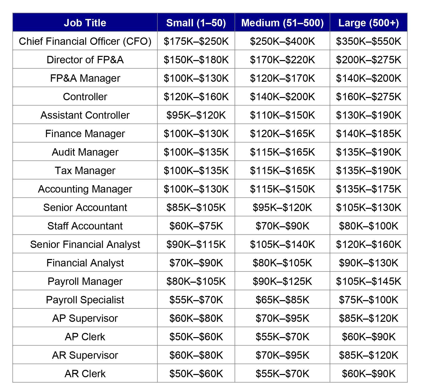 Our Seattle accounting salary guide ranges from a very small company on the left column to a very large corporation on the right. Most companies are somewhere in the middle.